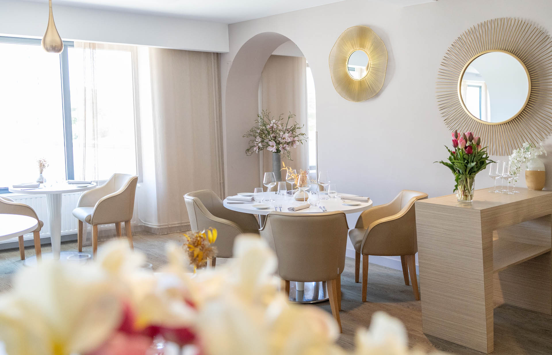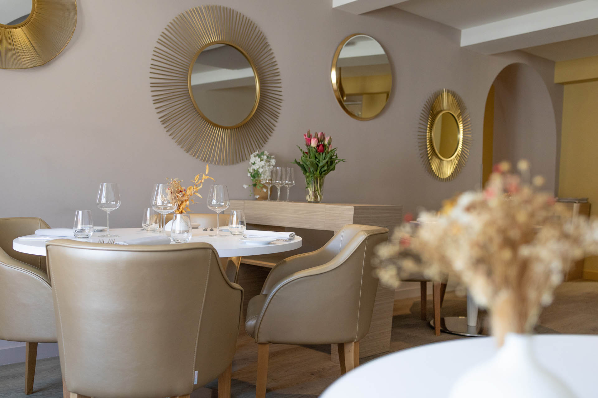 Le service se déroule dans un cadre sobre et élégant à l'intérieur ou sur une terrasse au calme l'été.